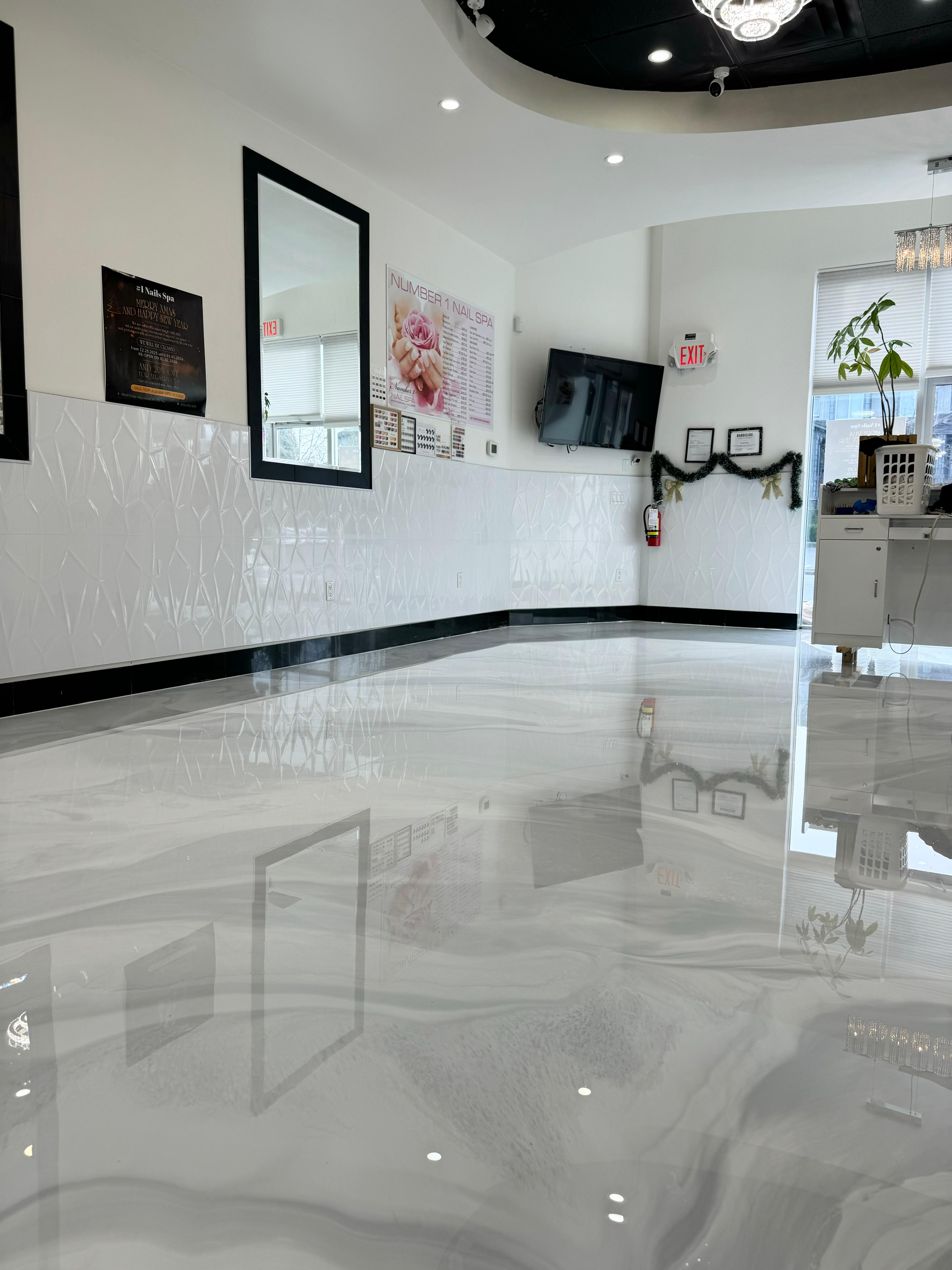 Make a first impression before anyone even meets you. A metallic lobby floor signals quality from the moment clients walk in.